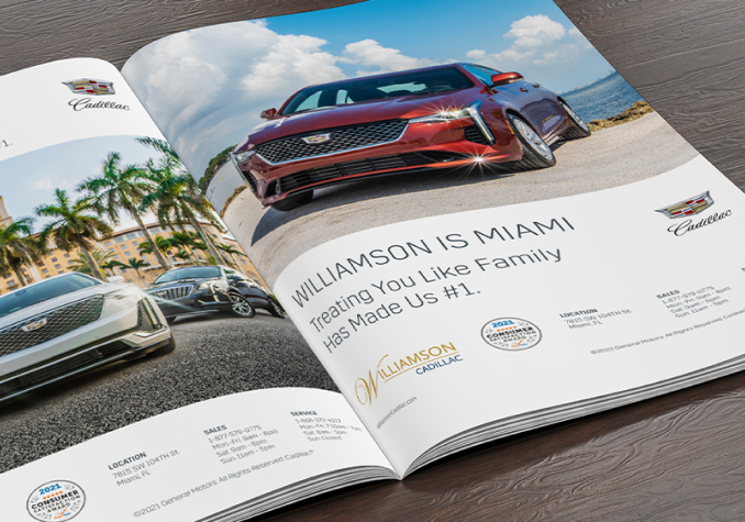 The “Williamson Is Miami” campaign has been a staple in South Florida since we introduced it nearly a decade ago. We shot our creative in all of the most beautiful locations in and around Miami to convey that the luxury, style and grace of a Williamson Cadillac goes hand in hand with Miami’s stunning visual beauty. We have run this campaign on Network TV, Cable TV, OTT, Radio and in Print.